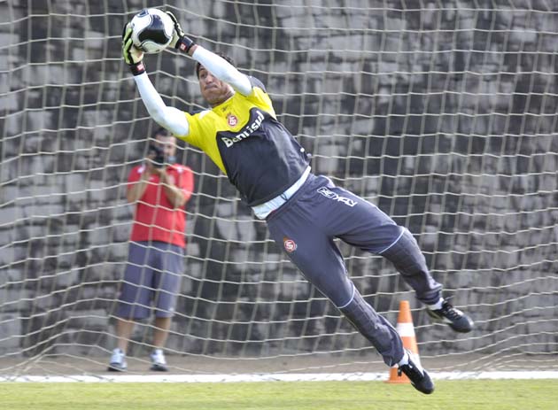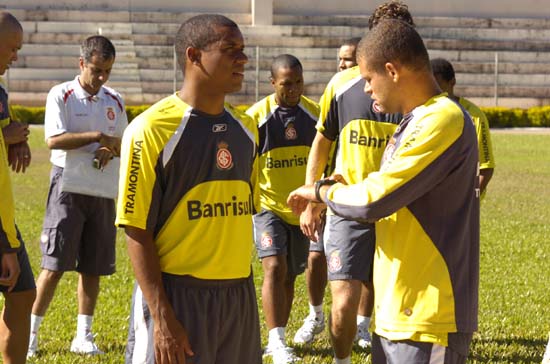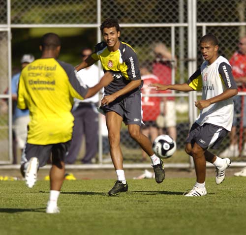 Nilmar (C) e Taison (D) no primeiro contato com bola do ano