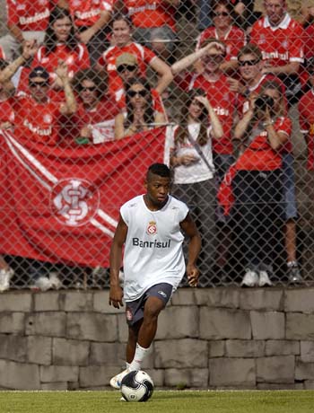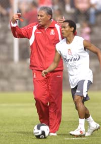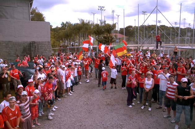 Em cada lance de efeito do treino com bola comandado pelo técnico Tite, os torcedores vibravam como se fora um jogo oficial. Quando Guiñazu deu um carrinho para tirar a bola de um companheiro, a reação das arquibancadas foi imediata: ?Guiñazu, Guiñazu Guiñazu?, gritavam os espectadores. Os dribles de D?Alessandro também provocaram empolgação. A animação foi grande quando Nilmar recebeu um lançamento e marcou um bonito gol de bicicleta. Ao final do treino, a multidão aplaudiu o grupo colorado.