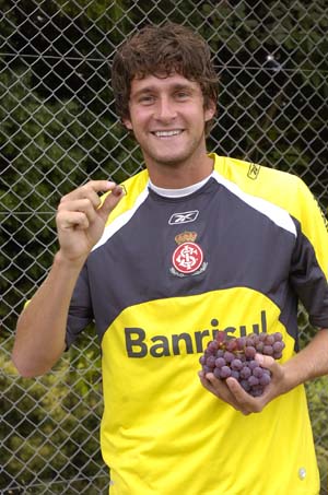 Danny Morais degusta um cacho de uvas no intervalo do treino