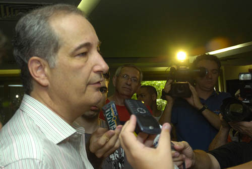 Assessor de futebol Giovanni Luigi falou com a imprensa no saguão do Hotel Dall'Onder, em Bento Gonçalves