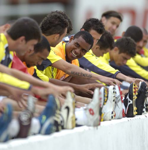Grupo colorado no último treino antes do jogo contra o Santa Cruz