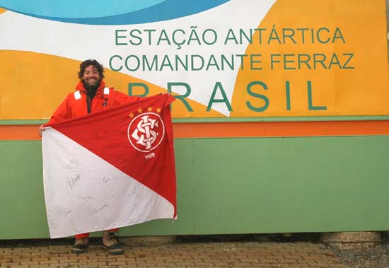O biólogo e cônsul do Inter Glauco Caon está na Antártica realizando trabalhos com baleias e golfinhos. A bordo do navio Ary Rangel (H44), também conhecido como Gigante Vermelho, Caon faz pesquisas na travessia do Drake (entre Antártica e Chile) e nas Malvinas. Para homenagear o Inter no ano do seu Centenário, o cônsul do Clube no continente mais gelado do planeta desfraldou uma bandeira colorada assim que chegou à estação brasileira.