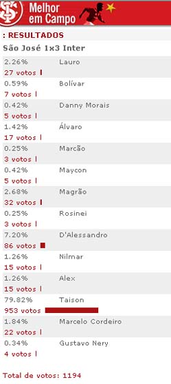 Enquete: Taison, o melhor em campo contra o São José-POA