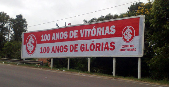 O consulado do Inter em Viamão prestou uma homenagem ao centenário do Inter. Para iniciar as atividades de comemoração do Centenário, o consulado colocou um outdoor duplo de (18x3m) na Lomba do Sabão, entrada e saída da cidade. A torcida colorada está se mobilizando para festejar esta data tão importante para o Clube e todos aqueles que amam o Inter.
