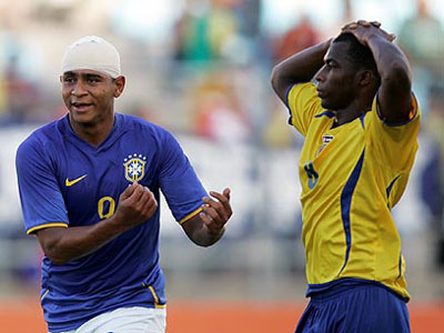 Um dos artilheiros do Sul-Americano, Walter (E) comemora seu gol contra a Colômbia