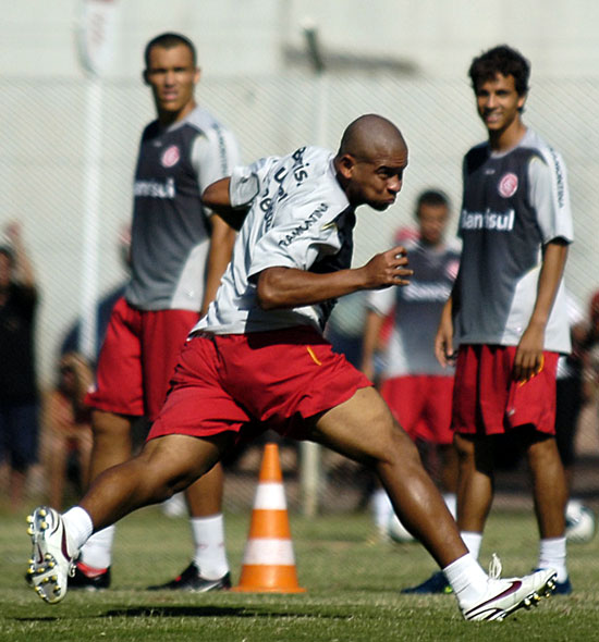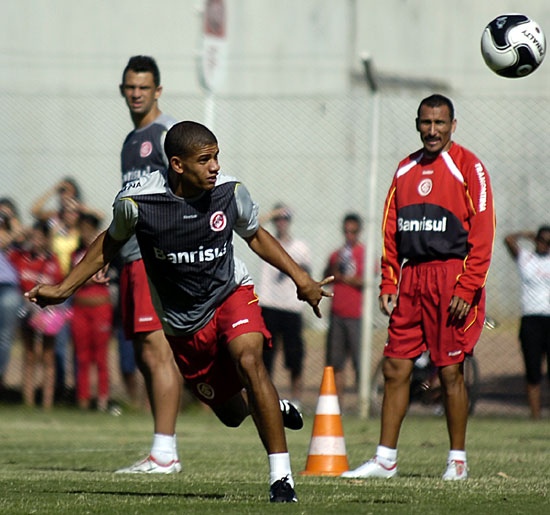 Taison, observado por Magrão (E) e Guiñazu (D)