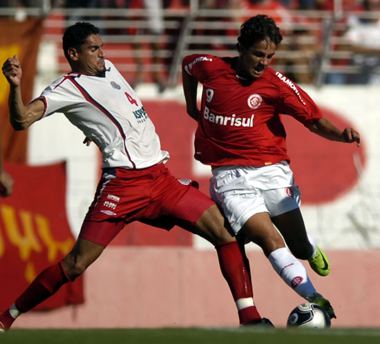 Nilmar com sua grande velocidade e técnica incomodou bastante a defesa adversária fazendo dupla com Taison