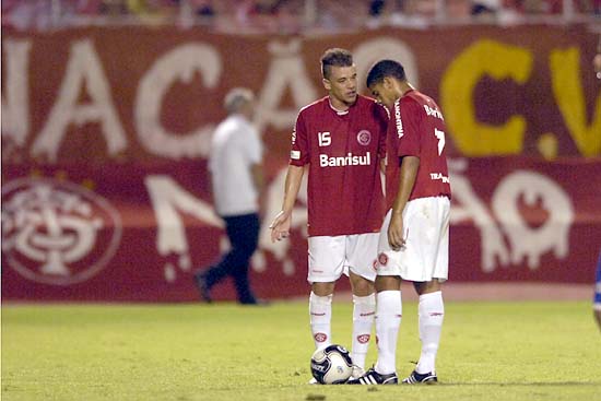 D'Alessandro (E) conversa com Taison antes da cobrança de falta