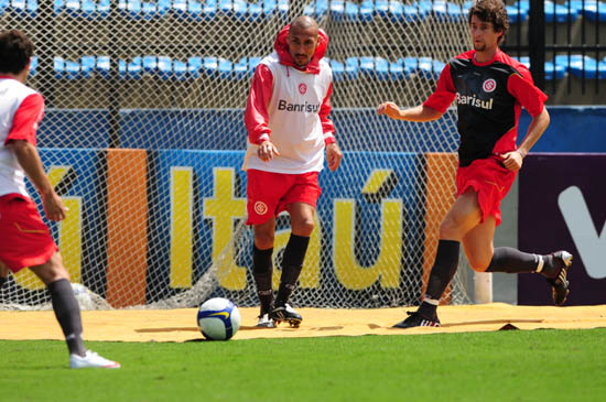 Em função do forte calor, o treino realizado na manhã deste sábado foi breve. Após uma sessão de aquecimento, os jogadores participaram de um treino recreativo em uma das metades do campo por cerca de 25 minutos. Logo depois, a delegação retornou para o bairro Alphaville - distante cerca de 5 quilômetros da Arena -, onde o Inter está concentrado.