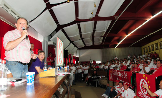 A movimentação começou cedo no Complexo Beira-Rio, em frente à entrada do salão nobre do Conselho. A concentração de pessoas lembrava um dia de grande jogo no Gigante, todos fardados de vermelho e branco. O encontro contou com a execução do hino do Clube, cantado por todos ao mesmo tempo que dois telões apresentavam imagens dos ídolos e das conquistas do Clube. Ao final, o grito de guerra ?Vamo, vamo Inter?.