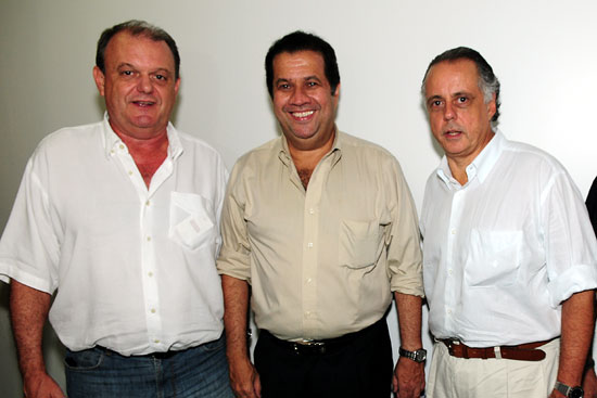 Ministro do Trabalho Carlos Lupi (C) posa pra foto junto do presidente Vitorio Piffero (E) e do vice de futebol Fernando Carvalho