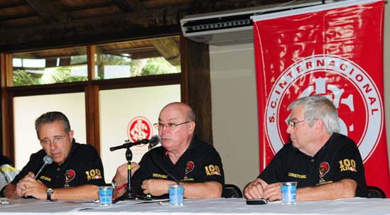 O Internacional apresentou detalhes sobre a programação de eventos em comemoração ao Centenário em uma coletiva para a imprensa, na tarde desta segunda-feira (23/3), no Centro de Eventos do Beira-Rio. Os vice-presidentes de marketing, Jorge Avancini, e de Comunicação Social, Gelson Pires, e o representante da comissão de organização das festividades do Centenário, Remy Susin, falaram aos jornalistas sobre os preparativos para a celebração dos 100 anos do Clube.