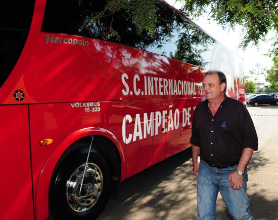 Presidente Vitorio Piffero ao lado do ônibus do Inter