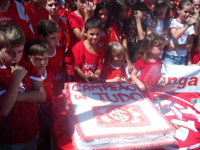 A cidade de Restinga Seca-RS completou 50 anos na última quarta-feira (25/3) e recebeu a visita do Jornal do Almoço, que foi transmitido direto da praça central. Durante o programa, colorados do município aproveitaram para exibir um bolo de aniversário com a inscrição 'Campeão de tudo'. Centenas de crianças vestiam a camisa do Inter e cantavam músicas de amor ao Clube.