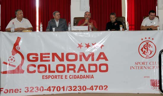 O Projeto Genoma Colorado promoveu o VI Encontro Técnico, na manhã deste sábado, no Salão do Conselho Deliberativo. Representantes de 82 núcelos do Rio Grande do Sul, Santa Catarina, Paraná e Rio de Janeiro estiveram presentes no tradicional evento anual, que abre os trabalhos da temporada. Além do diretor do Genoma Colorado, Antônio Adil Souto, e do assessor administrativo Elpídio Braga, também estiveram presentes à mesa os vice-presidentes de administração, Décio Hartamann, e marketing, Jorge Avancini, o avaliador técnico Luiz Cláudio Sanzi, e o comunicador da Rádio Farroupilha e parceiro do Projeto, Nelson Marconi.