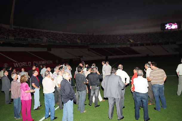 Dirigentes e convidados foram ver o novo placar eletrônico (no canto superior direito)