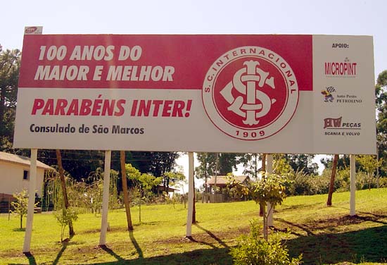O consulado do Inter em São Marcos-RS produziu um outdoor em homenagem ao Centenário do Clube, que será comemorado no próximo sábado (4/4).