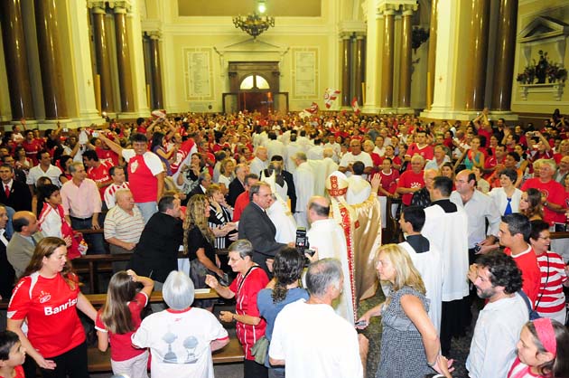 Depois da benção final, os bancos da catedral mais pareciam as arquibancadas do Beira-Rio. A torcida cantou com empolgação o hino e saiu da igreja em procissão cantando os gritos de guerra que agitam o Gigante. Na Praça da Matriz, uma grande queima de fogos completou a festa dos colorados no centro da cidade.