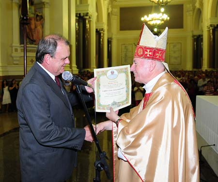 Dom Dadeus Grings entrega para Vitorio Piffero mensagem enviada pelo Papa Bento XVI