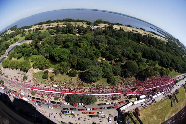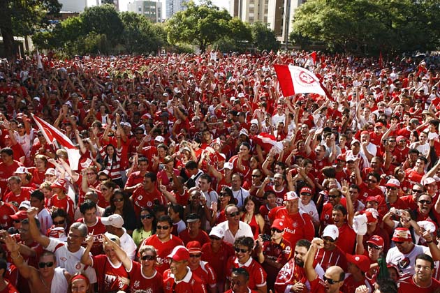 Uma das manhãs mais vermelhas da história de Porto Alegre. Assim podem ser consideradas as primeiras horas de sol sobre a capital quando milhares de torcedores do Inter foram às ruas para a Marcha Colorada, preenchendo vermelho, branco, alegria e orgulho todo os espaços do trajeto. Nem o calor de cerca de 30 graus e o sol escaldante arrefeceram o ânimo da maior torcida do Rio Grande. Foi uma festa inesquecível.