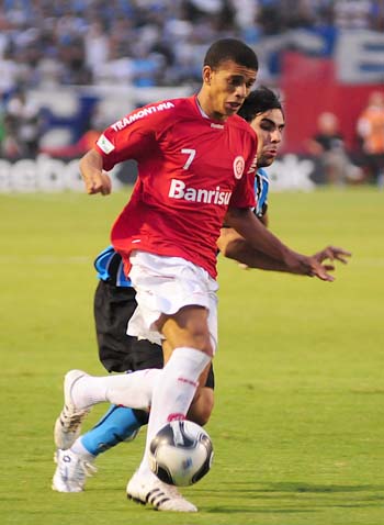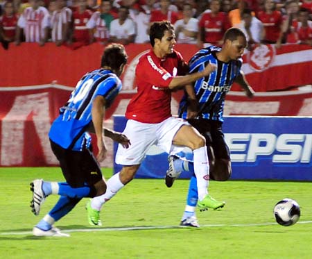 Nilmar parte em alta velocidade para cima da marcação gremista