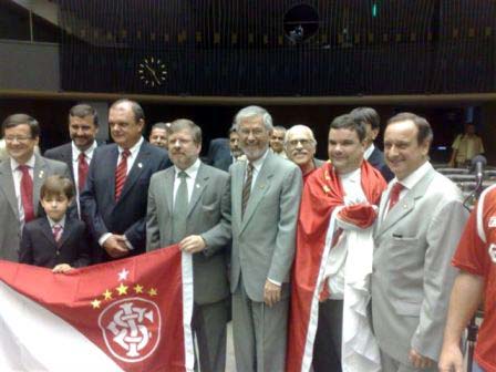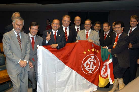 A Câmara dos Deputados realizou uma sessão solene, nesta segunda-feira (6/4), no Plenário Ulisses Guimarães, em Brasília, em homenagem ao Centenário do Sport Club Internacional. O proponente da homenagem foram os deputados Vieira da Cunha (PDT-RS) e Onix Lorenzoni (DEM-RS), que são conselheiros do Clube. Participaram da sessão o presidente do Inter, Vitorio Piffero, o segundo vice-presidente Mário Sérgio Martins e o presidente do Conselho Deliberativo, Luis Antonio Lopes.