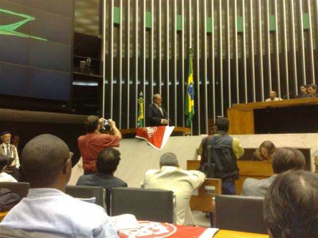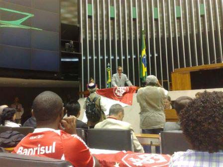 Dezenas de colorados pintaram de vermelho e branco a Câmara, com camisas e bandeiras do Inter. No painel do plenário, a marcação de presença e de votos dos deputados foi substituída por um vídeo contando a trajetória do Clube e de outro com a reprise do gol da vitória do Mundial Interclubes. O último foi comemorado com gritos de "Vamos, vamos Inter".