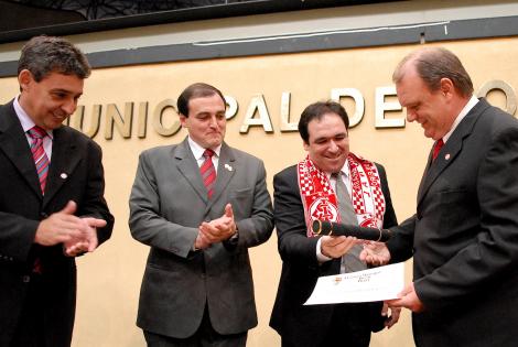 O Inter recebeu na noite desta terça-feira (07/04) mais uma homenagem pelo Centenário e também pelos 40 anos do estádio Gigante da Beira-Rio. A Câmara Municipal de Porto Alegre dedicou uma sessão solene ao Internacional, proposta pelos vereadores João Pancinha (PMDB) e Dr. Thiago Duarte (PDT), no plenário Otávio Rocha. Compuseram a mesa o presidente da Casa, vereador Sebastião Melo (PMDB), o presidente do Inter, Vitorio Piffero, o Superintendente Geral da Assembléia Legislativa do RS, ex-vereador João Motta, o deputado Luiz Fernando Záchia, o secretário adjunto da Segurança Rubens Edson Pinto, o representante do Tribunal de Justiça do RS, desembargador José Aquino Flôres de Camargo, o representante da Procuradoria Geral de Justiça do RS, procurador Ubaldo Licks Flores (esses últimos quatro também conselheiros colorados), o diretor do Fórum de Porto Alegre, juiz Carlos Eduardo Richinitti e o diretor do Departamento de Esgotos Pluviais (DEP), Ernesto Teixeira.