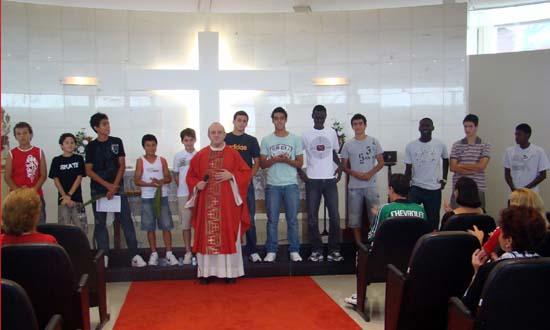 No dia seguinte ao Jantar do Centenário do Sport Club Internacional ? onde foram homenageados antigos atletas do Inter ?, foi a vez dos atletas das categorias de base do Clube receberem homenagem e uma benção especial, durante a tradicional Missa das 11h15min, na Capela do Inter. ?No sábado (04/4) foram homenageados os ex-atletas que construíram a grandeza do Sport Club Internacional, hoje vamos fazer uma homenagem ao futuro do Inter, abençoando os jogadores das categorias de base, rezando para que possam ajudar na construção de um futuro de glórias para o nosso Clube?, declarou o Capelão, Padre Leandro Chiarello.