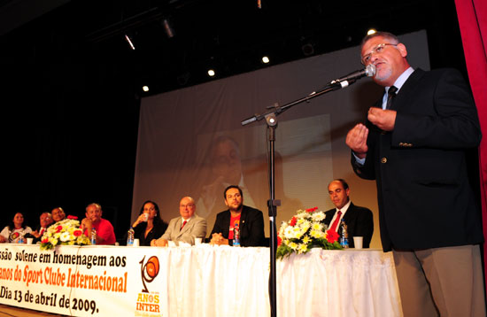 Os vereadores falaram de suas histórias de paixão pelo Inter, em destaque a lição de vida do vereador Nestor Moraes, deficiente físico que também tinha o sonho de ser jogador de futebol quando garoto. "Nos sentimos extremamento honradois por esta homenagem. Sabemos que no sábado (dia 4) a torcida colorada fez de São Leopoldo uma verdadeira passarela vermelha", lembrou o vice-presidente de serviços especializados, Roberto Siegmann. "A essência do Internacional é estarmos cravados nos corações colorados de todos os cantos do Estado, mas também em todos os estados do Brasil e hoje em muitos lugares do mundo", disse Siegmann. Ao final da cerimônia o hino rio-grandense, o hino do Inter e, claro, em uníssono o "Vamo, vamo, Inter" tomou conta do Teatro.