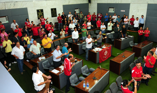 Dezenas de colorados cantaram o hino oficial do Clube ao final da sessão solene na Câmara de Canoas