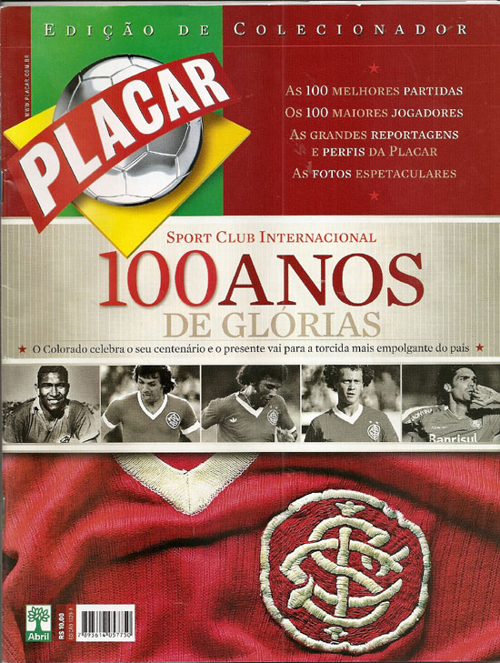 Uma das principais revistas de esportes do Brasil, a Placar, produziu uma edição de colecionador exclusivamente para o Centenário do Sport Club Internacional - está à venda nas bancas. Destaque para a chamada de capa (reprodução na imagem abaixo), que diz ?O colorado celebra seu centenário e o presente vai para a torcida mais empolgante do país?.