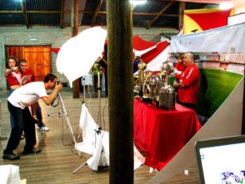 Torcedores puderam tirar fotos ao lado das taças