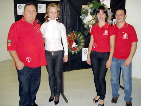 Confrade Bastos, Coordenadora da Parceiros Voluntários de Bento Gonçalves, Daiane Predebon, e confrades Lidiane e Paulo Ricardo no lançamento do leilão