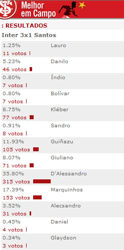 Enquete: D'Alessandro, o melhor em campo contra o Santos