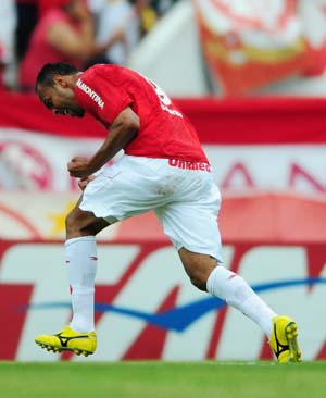 colorado marcou 65 gols e sofreu 44. Os goleadores da equipe na competição foram Alecsandro (foto), com 16 gols, e D´Alessandro e Andrezinho, com seis. O Inter foi o time que mais marcou gols no planeta em 2009. Foram 156 gols em 76 jogos, uma média de pouco mais de dois gols por partida.