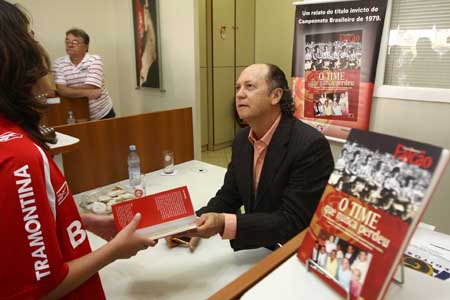 Trinta anos depois da conquista do único título invicto do Campeonato Brasileiro, o ídolo eterno Paulo Roberto Falcão estará no dia 17 de dezembro, dia do Show do Centenário, autografando o seu livro 'O Time que Nunca Perdeu'. Falcão autografou o livro em uma sessão realizada na Ouvidoria do Beira-Rio, na tarde desta quinta, junto ao Show do Centenário.