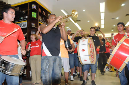 Banda da Torcida Popular fez uma intervenção na livraria