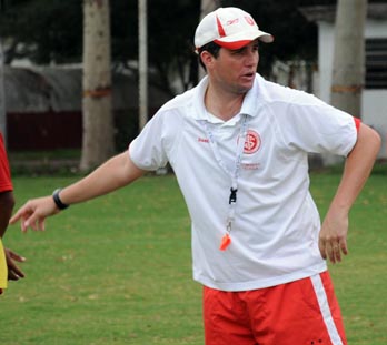 Osmar Loss orienta jogadores no treino desta segunda-feira