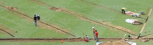 O período é de comemorações em virtude do feriado de Natal e da virada do ano, mas no Beira-Rio o trabalho segue ocorrendo. Para que o gramado do Gigante esteja pronto para a partida de estreia do Inter no Gauchão, no próximo dia 17 de janeiro, contra o Ypiranga, a vice-presidência de patrimônio do Clube supervisiona a implantação do novo sistema de drenagem no campo principal do Complexo. A ideia é manter o padrão de alta qualidade do campo e torná-lo ainda mais seguro. O gramado foi eleito o melhor do Brasil neste ano, em uma pesquisa promovida pelo site Globoesporte.com. A enquete teve como participantes os 20 capitães das equipes que disputaram o Brasileirão 2009.
