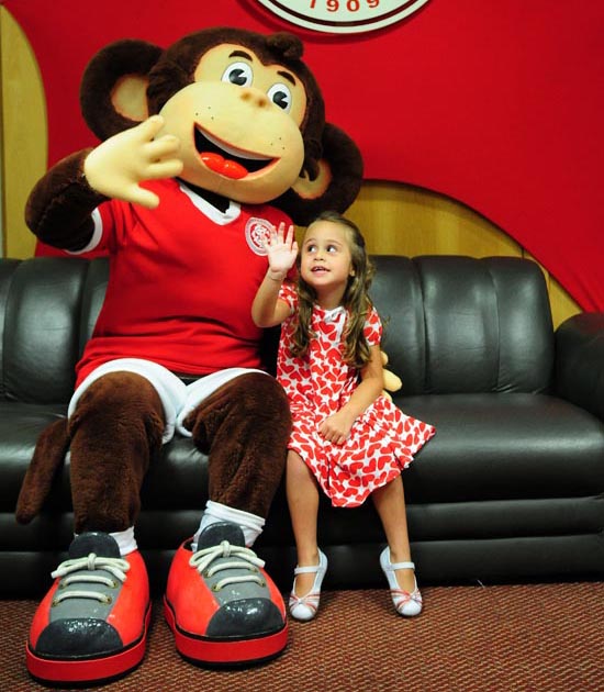 Criançada se divertiu com o novo personagem do Internacional, o Escurinho
