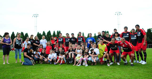 Os jogadores posaram para fotos com crianças da Associação Integrada do Desenvolvimento do Down, no final do treino desta terça-feira. A entidade trabalha com crianças portadoras da síndrome de Down.