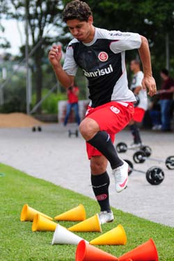 O penúltimo dia da pré-temporada em Bento Gonçalves começou com exercícios puxados para o grupo colorado. O preparador físico Alejandro Valenzuela orientou uma bateria de intensas atividades na Associação Geremia.