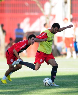 Enquanto o confronto não chega, o Inter aproveita o tempo para trabalhar. No primeiro dia, o preparador físico, Alejandro Valenzula, exigiu bastante dos jogadores na questão muscular. E quem esperava que seria somente isso nesta terça, se enganou. Logo depois, Fossati chamou o grupo e promoveu um trabalho com bola (foto ao lado): dois times cujos jogadores sofrem um rodízio conforme a vontade do treinador.