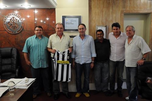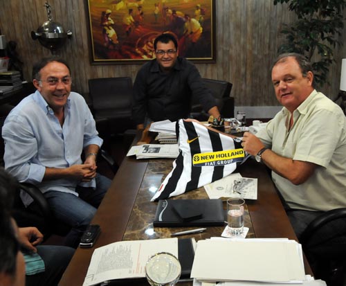 Presidente Vitorio Piffero (D) exibe camisa oficial da Juventus, presente do diretor do clube italiano, Renzo Castagnini