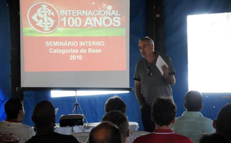 A experiência dos profissionais do grupo principal do Inter marcou presença no seminário interno das categorias de base coloradas. O técnico Jorge Fossati, acompanhado de seu preparador físico, Alejandro Valenzuela, e os coordenadores da preparação física, Elio Carravetta e Fabio Mahseredjian, palestraram sobre a importância da formação de jogadores e buscaram passar seus conhecimentos para realizar um bom trabalho em uma temporada no futebol, englobando planejamentos e estratégias para atingir as metas do ano.
