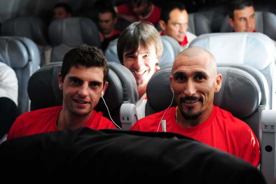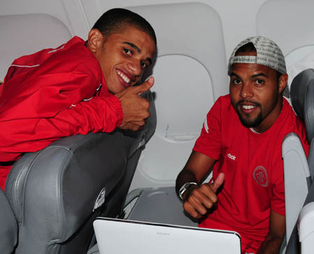 Estrangeiros entrosados: uruguaio Bruno Silva e argentino Guiñazu curtem o mesmo som no avião