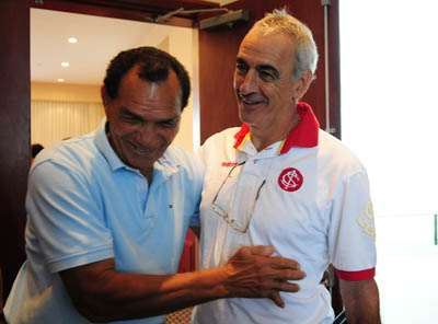 O bicampeão brasileiro se encontrou também com o técnico Jorge Fossati, que o enfrentou nos anos 70, quando Manga defendia o Nacional e Fossati, o Peñarol. “É muito bom ver o Manga, aos 72 anos, bem de saúde e com esta aparência ótima”, disse o treinador colorado.