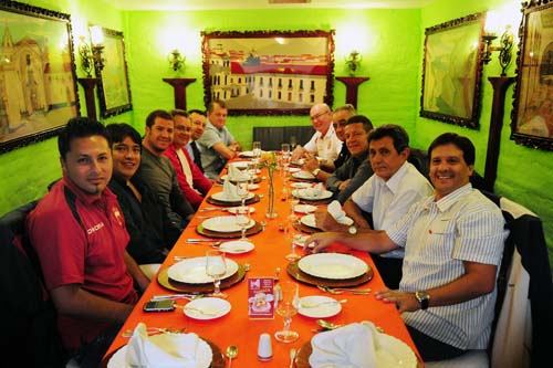 A direção do Deportivo Quito ofereceu um almoço para dirigentes e membros da delegação colorada no Equador nesta quinta-feira. Estiveram presentes representando o Inter: Mario Sergio Martins (2º vice-presidente), Gelson Pires (vice de Comunicação Social), Luiz Antonio Lopes (presidente do Conselho Deliberativo), Celso Chamun (vice do Parque Gigante) e Luis Dagoberto Paganella (vice de Serviços Jurídicos). O gerente da Reebok na Região Sul, Edu Pesce, e o superidentente da Polícia Federal do RS, Hildo Gasparetto, também estiveram presentes no encontro.