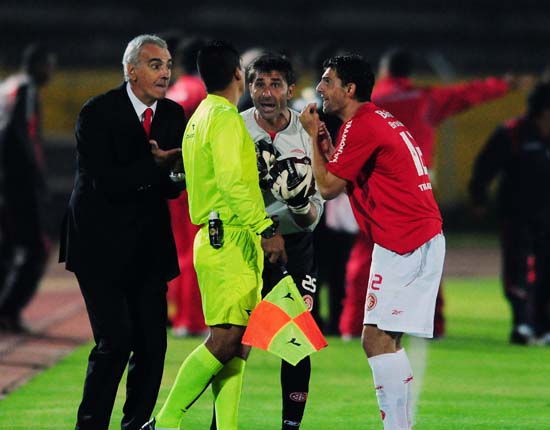 Abbondanzieri utilizou toda a sua experiência no lance do pênalti absurdo marcado pelo colombiano José Buitrago, aos 7min do segundo tempo. Ele tomou o controle da situação surreal que se desenhava no Atahualpa. Primeiro conteve a ira dos companheiros, que cercaram o juiz clamando pela reconsideração do lance. Rapidamente, junto ao técnico Jorge Fossati, Pato dirigiu-se ao bandeirinha. Falando e gesticulando muito na linha lateral do gramado, reivindicou que o auxiliar interviesse na decisão do juiz. Com convicção, ajudou a reverter a falta para o Inter. Também soube valorizar a reposição da bola em momentos-chave da partida. Enfim, Pato Abbondanzieri foi o nome do jogo em Quito.